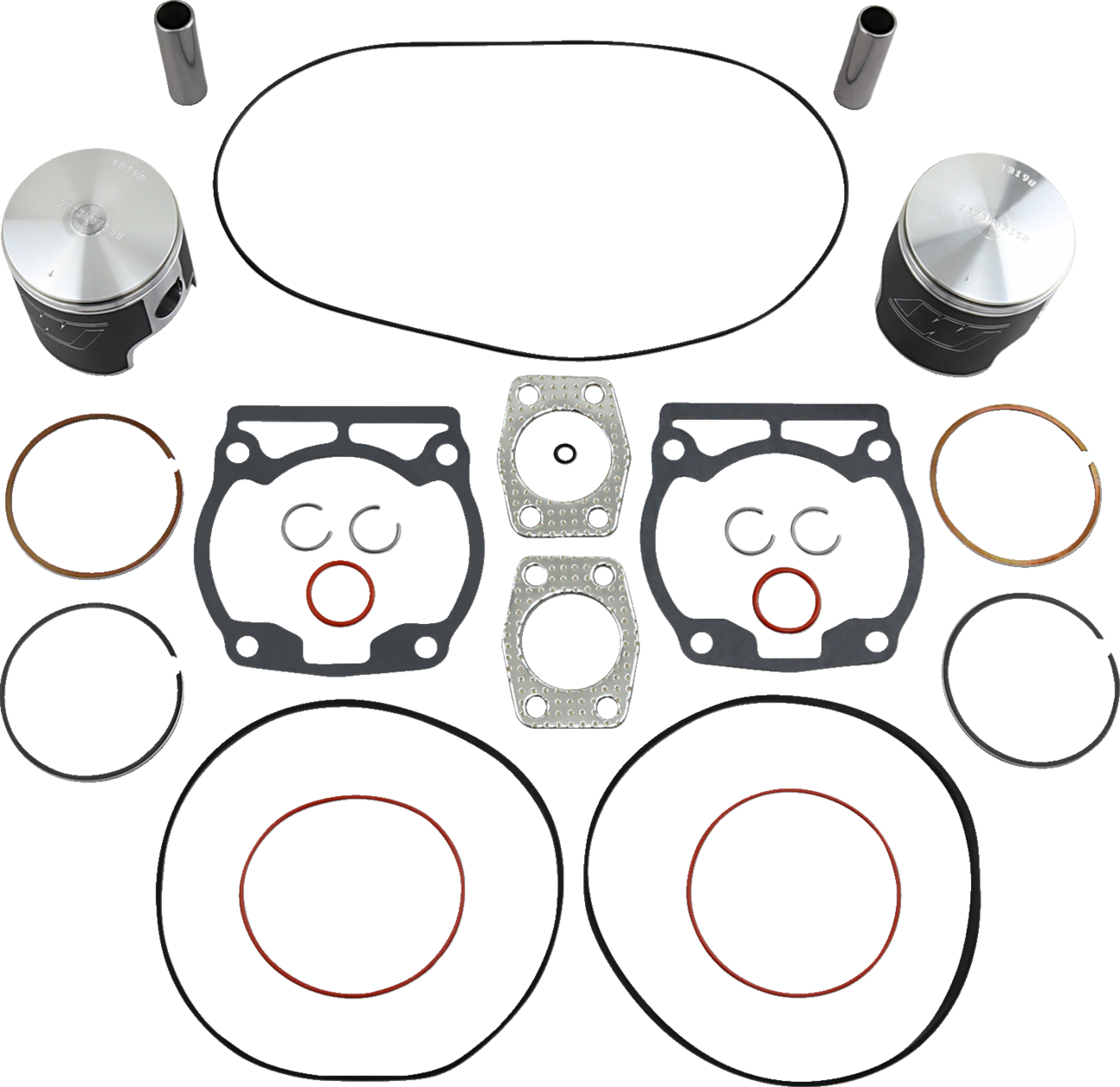 - Kit includes forged pistons, rings, wrist pins, circlips and top end gasket set