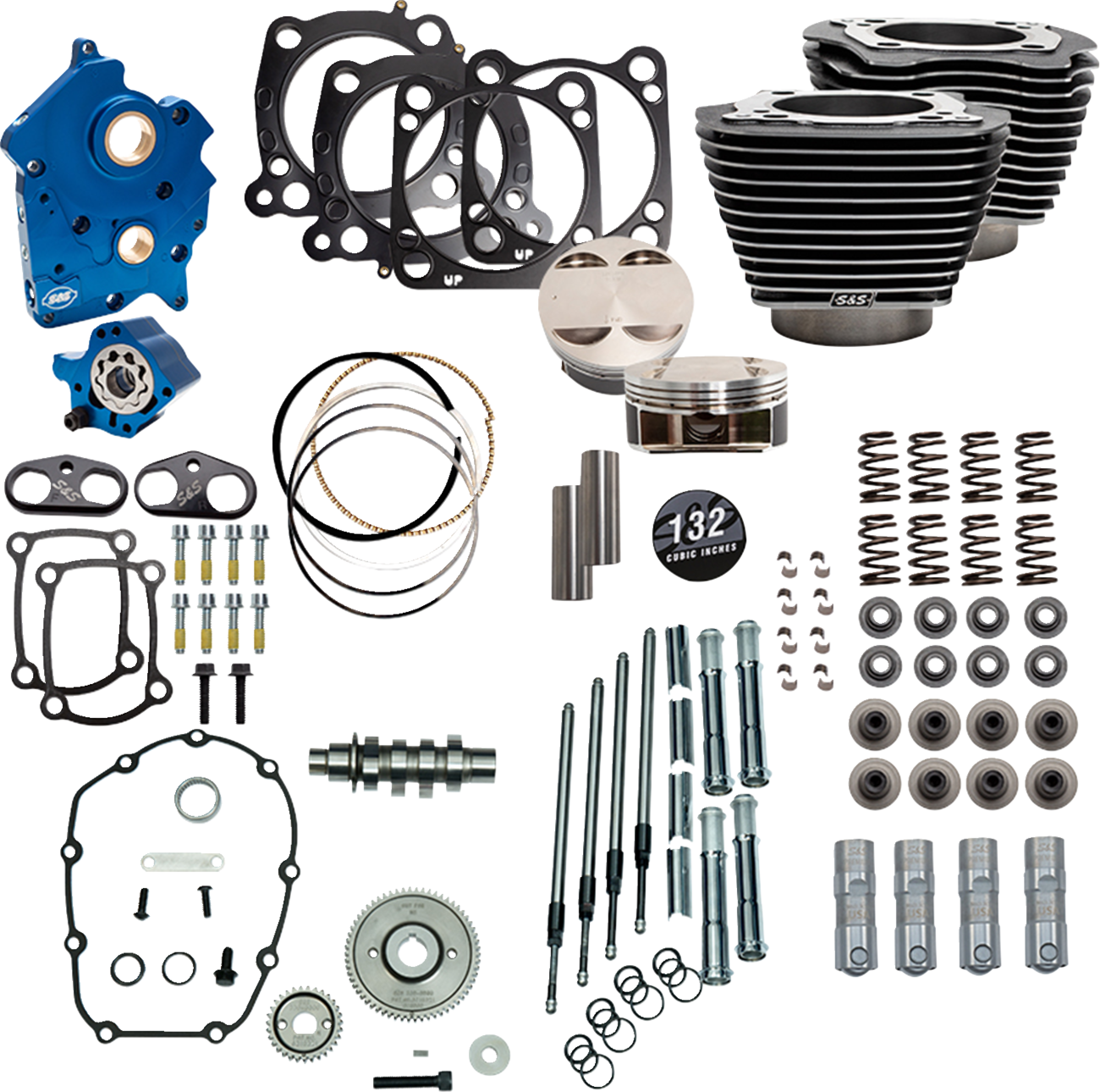 - Kit includes forged pistons, rings, wrist pins, circlips and top end gasket set