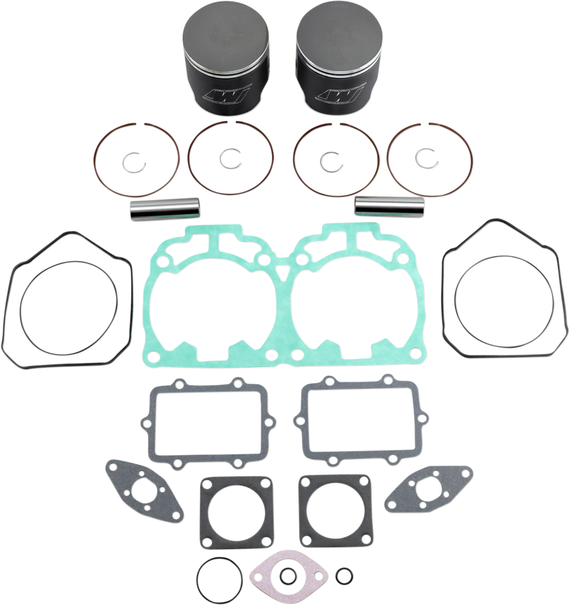 - Kit includes forged pistons, rings, wrist pins, circlips and top end gasket set