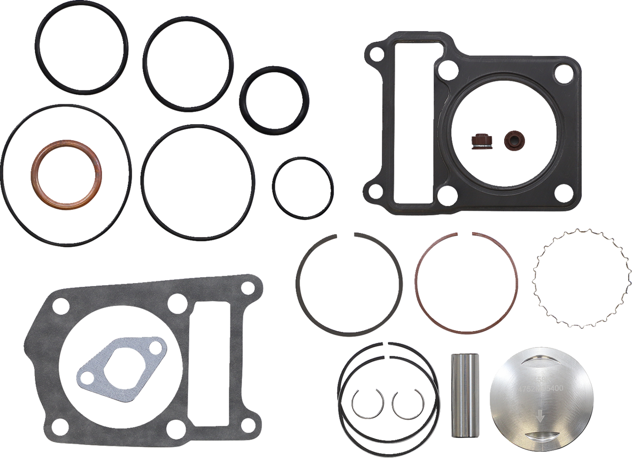 - Complete piston kit includes pistons, rings, wrist pins, circlips and top-end gasket kit for one complete engine