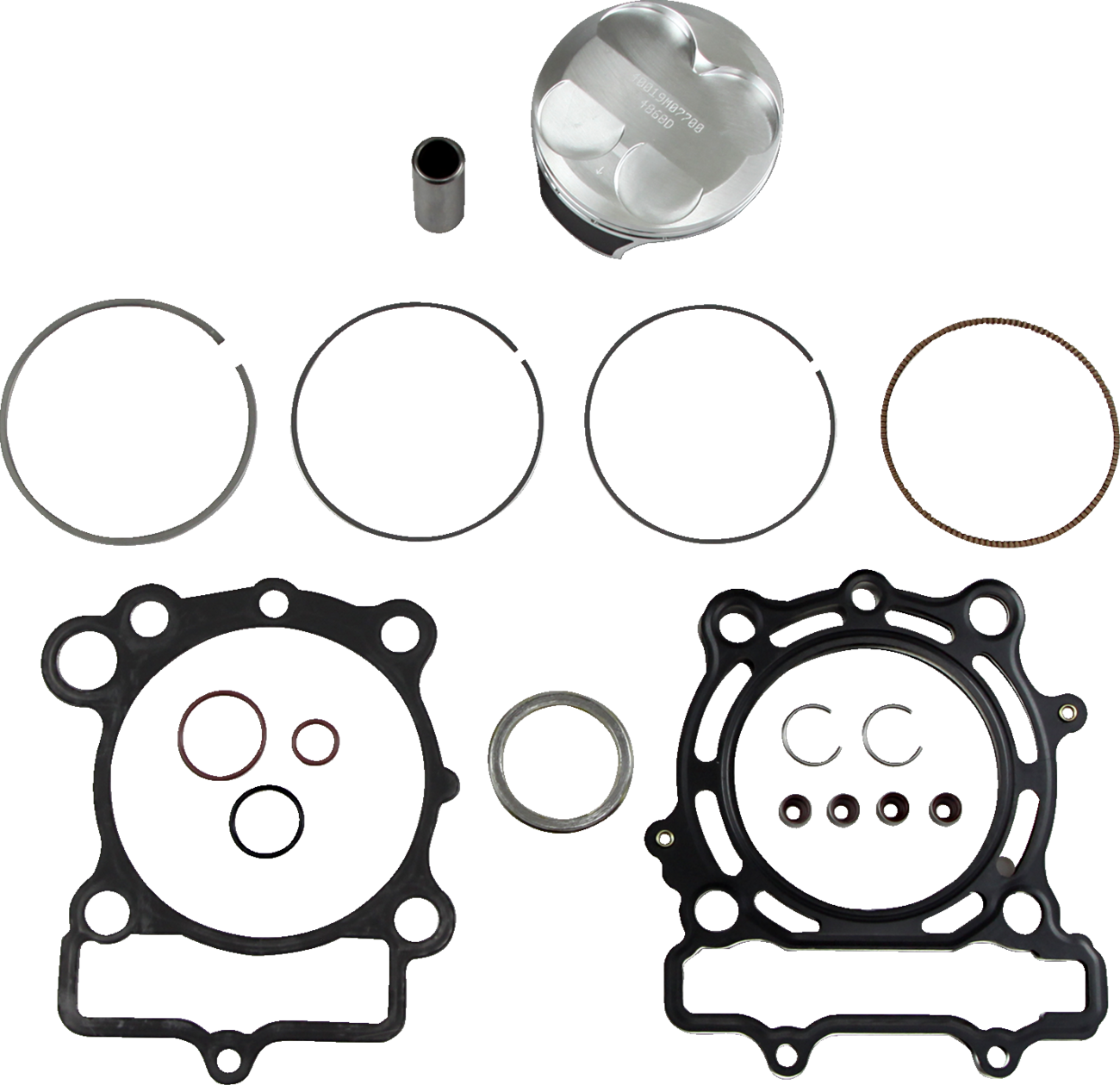 - Complete piston kit includes pistons, rings, wrist pins, circlips and top-end gasket kit for one complete engine