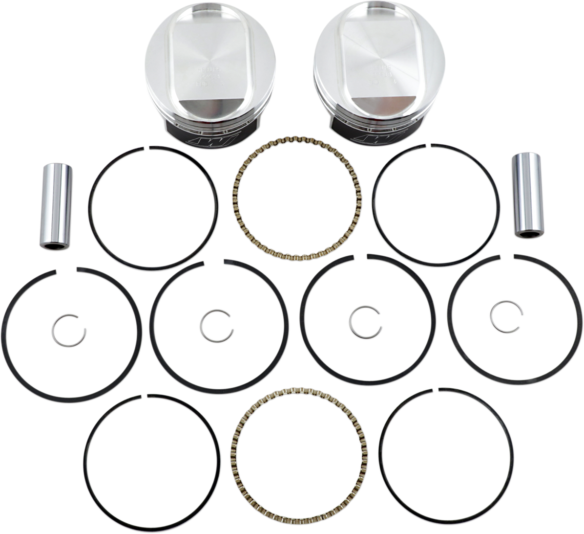 - Kit Includes pistons, rings, retainer clips and chrome piston pins