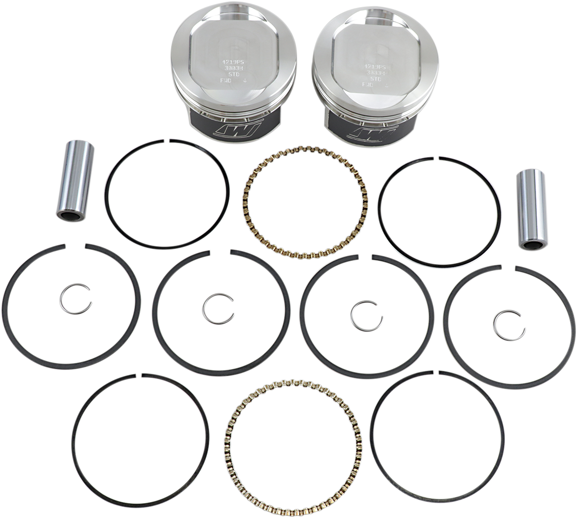 - Kit Includes pistons, rings, retainer clips and chrome piston pins