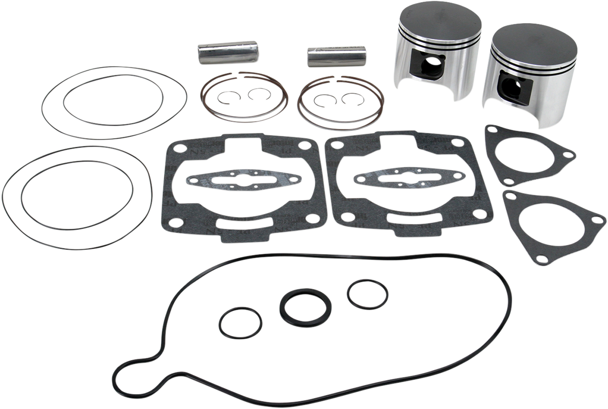 - Kit includes forged pistons, rings, wrist pins, circlips and top end gasket set