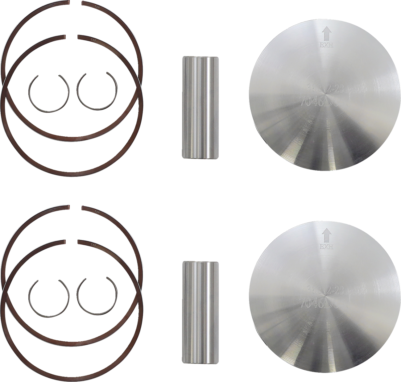 - Kit includes piston, rings, wrist pin and pin locks