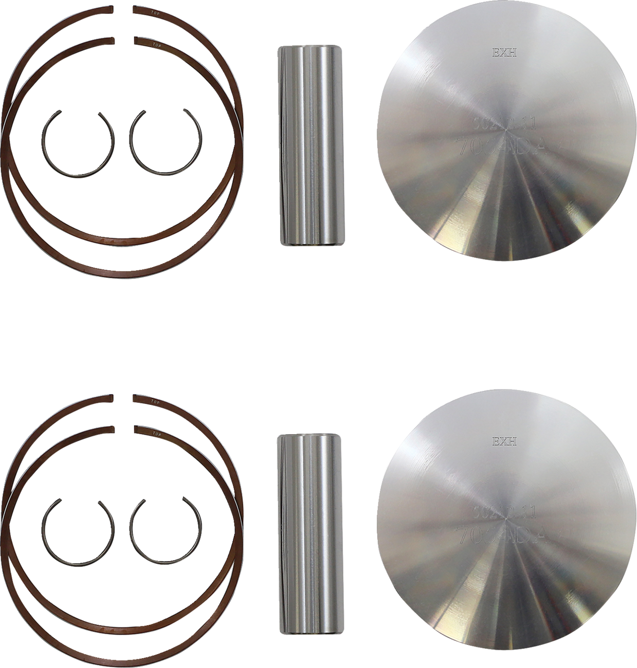 - Kit includes piston, rings, wrist pin and pin locks