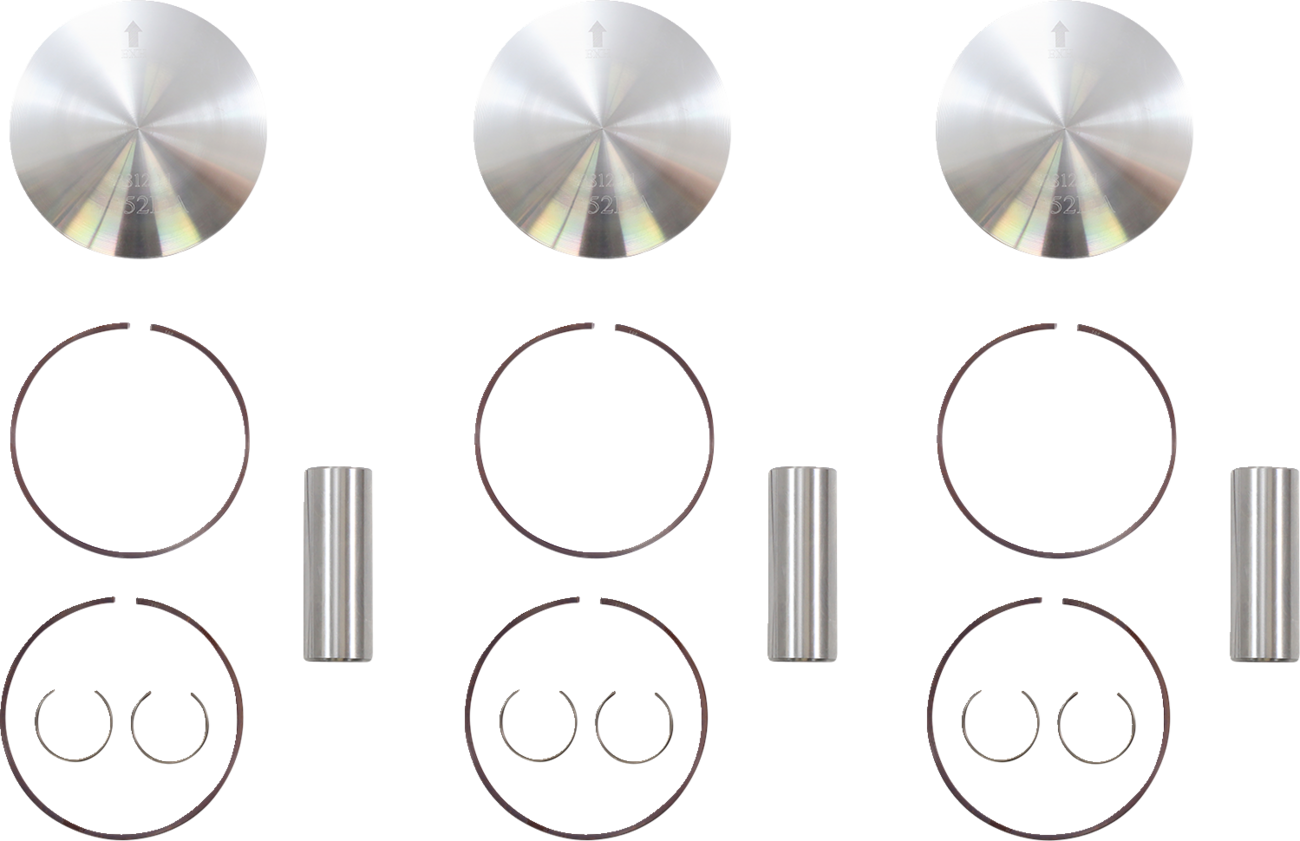 - Kit includes piston, rings, wrist pin and pin locks