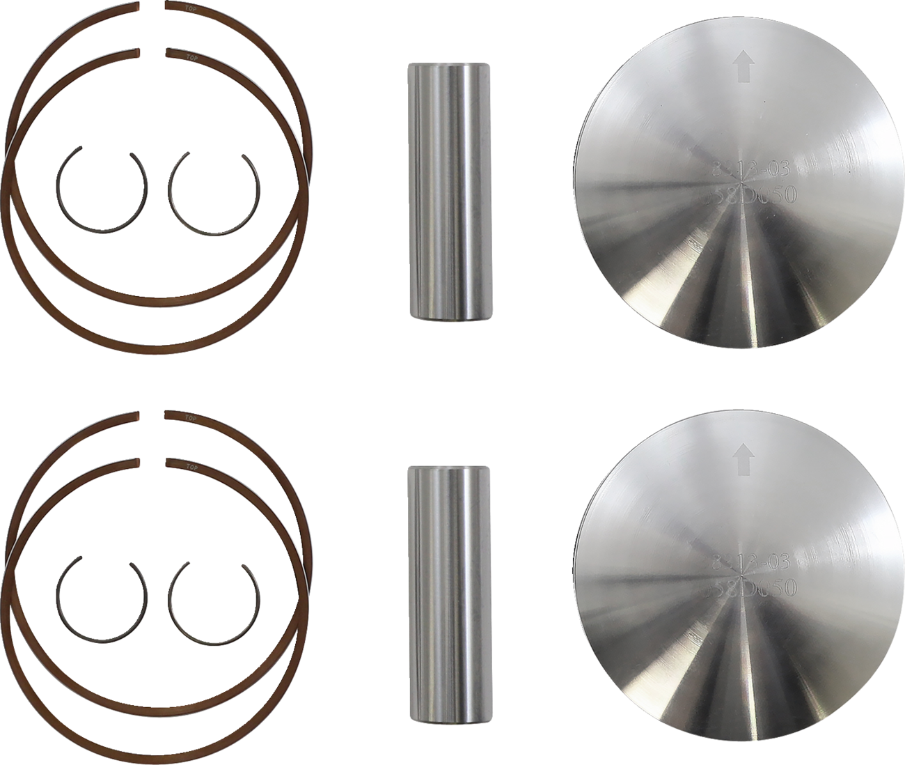 - Kit includes piston, rings, wrist pin and pin locks