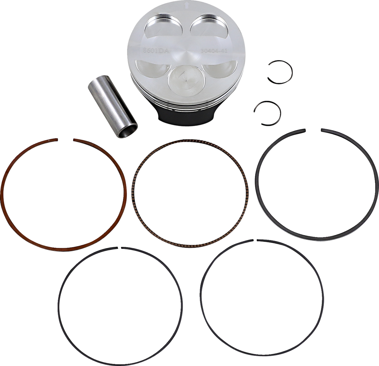 - Kit includes piston, rings, wrist pin and pin locks