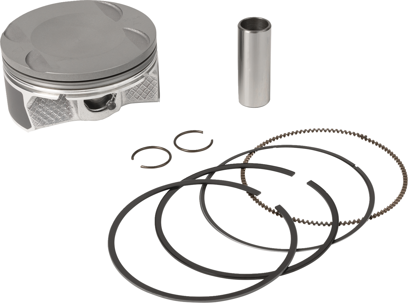 - Kit contains piston, rings, pin and clips