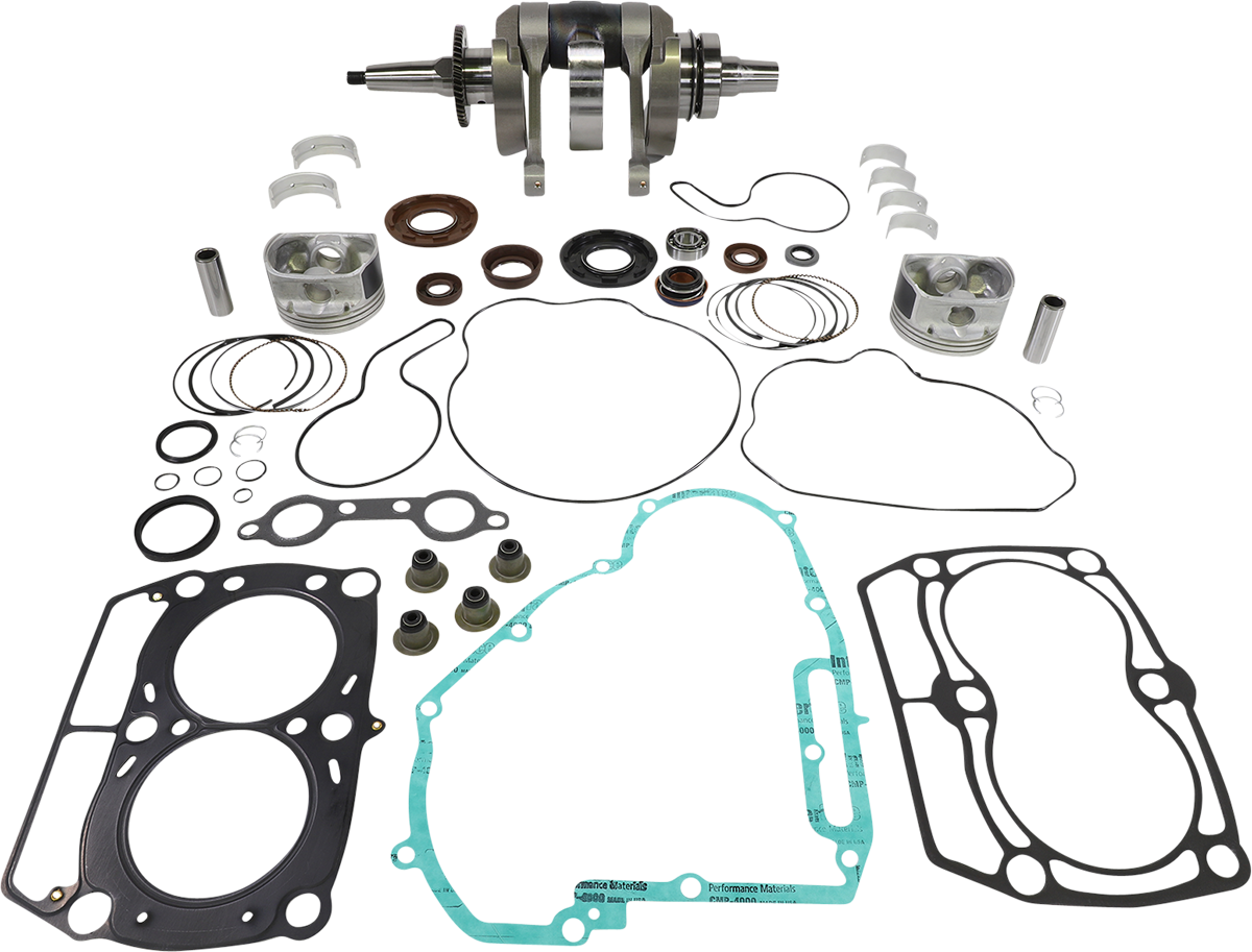 - Includes crankshaft, piston kit, complete engine gasket kit with oil seals, main bearings and seals, water pump rebuild kit, transmission bearings, countershaft bushing/seal kit, cam chain and counter balancer bearings when applicable