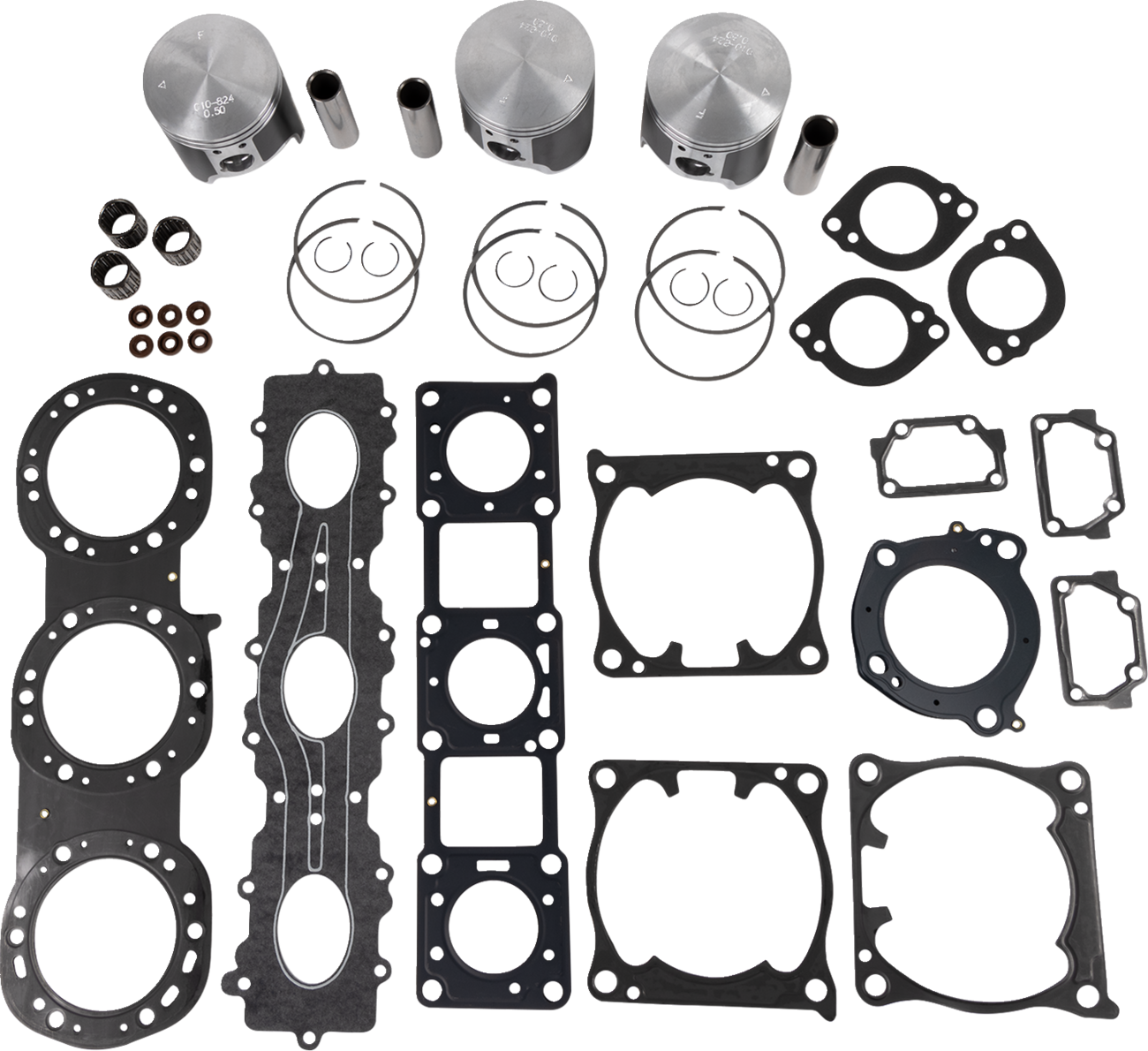 - Includes pistons, rings, pins, clips, racing needle bearings, head and base gaskets, intake and exhaust gaskets