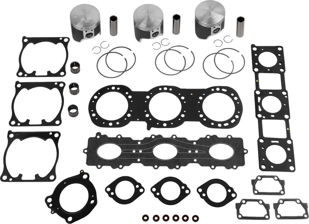 - Includes pistons, rings, pins, clips, racing needle bearings, head and base gaskets, intake and exhaust gaskets