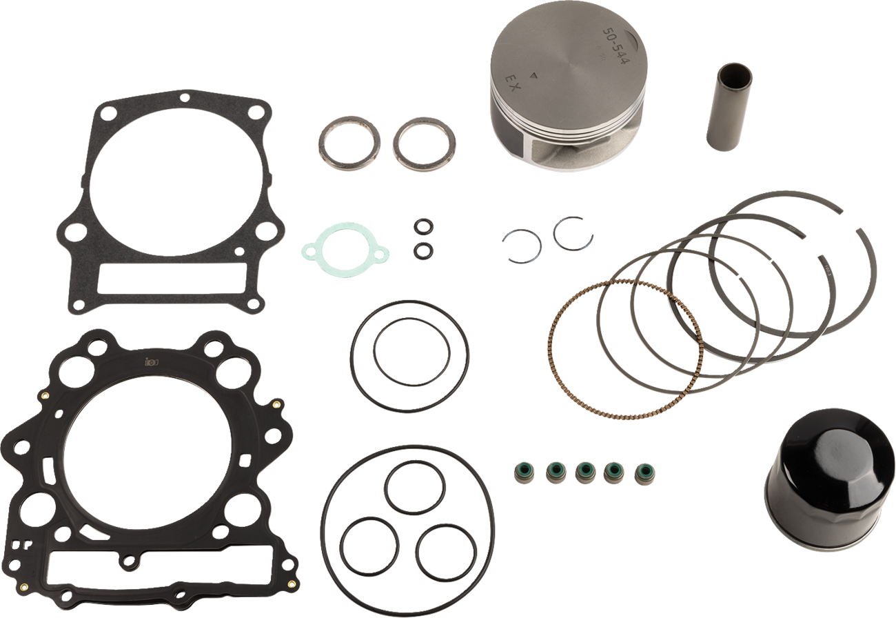 - Includes pistons, rings, pins, clips, head and base gaskets and intake and exhaust gaskets and oil filter for 4-stroke models
