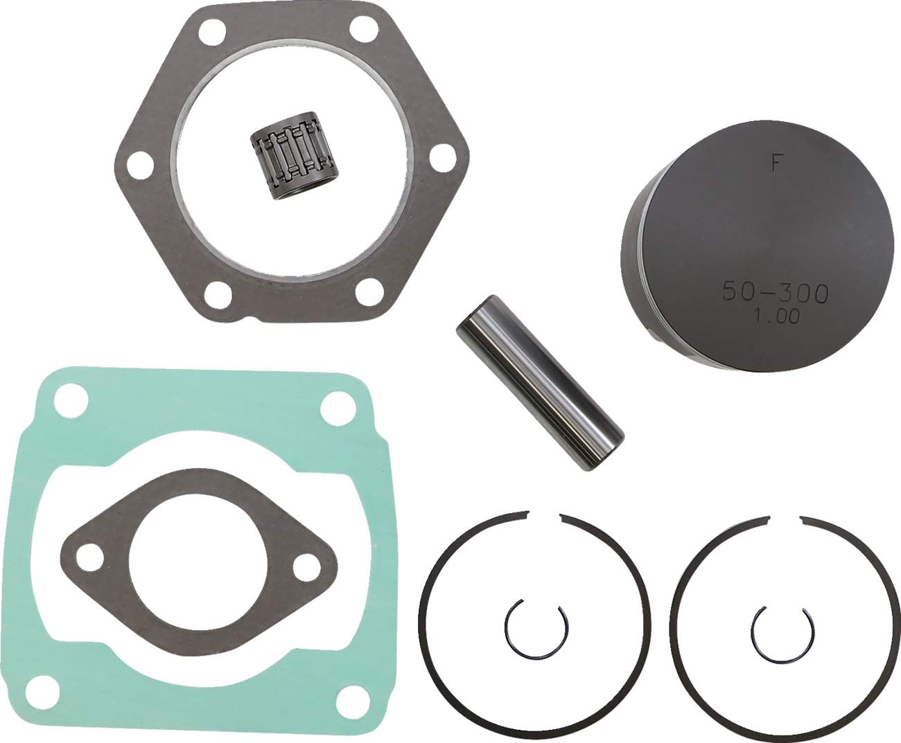 - Includes pistons, rings, pins, clips, racing needle bearings, head and base gaskets, intake and exhaust gaskets