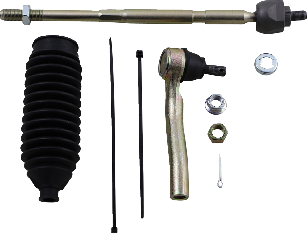 - Tie-rod end kit right, Inner and outer – contains both tie-rod end and shaft that connects to the steering rack as well as the outer tie-rod end; kit also contains a boot and required hardware for the right (passenger) side