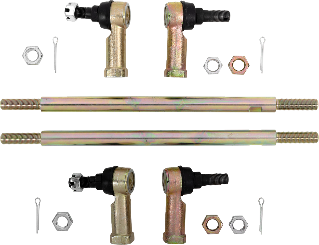 - Each kit contains two tie-rods, four tie-rod ends along with cotter pins and jam nuts