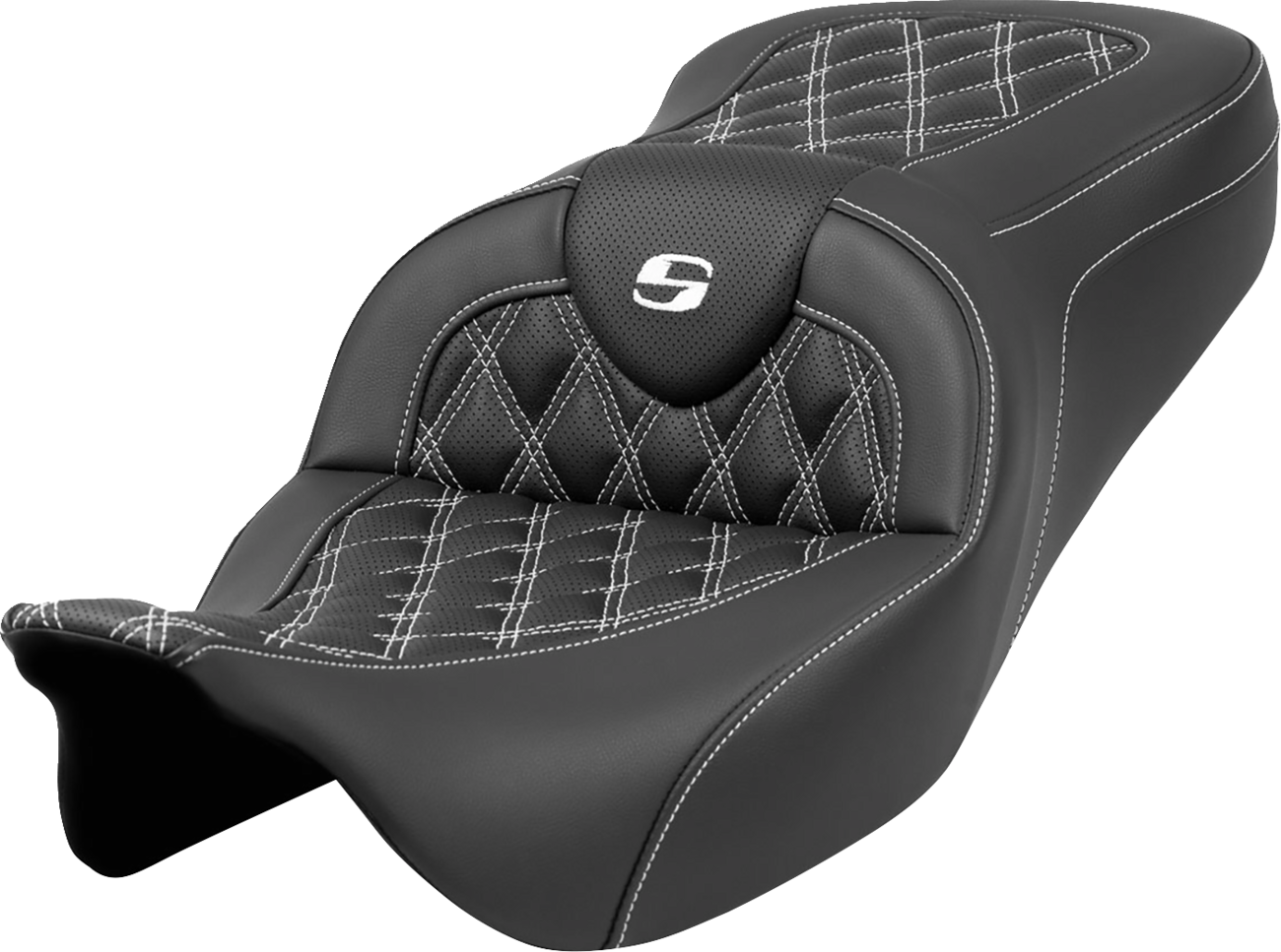 SADDLEMEN Roadsofa™ Seat – Lattice Stitch – White Stitch – without Backrest – FLH/FLT ’08-’23