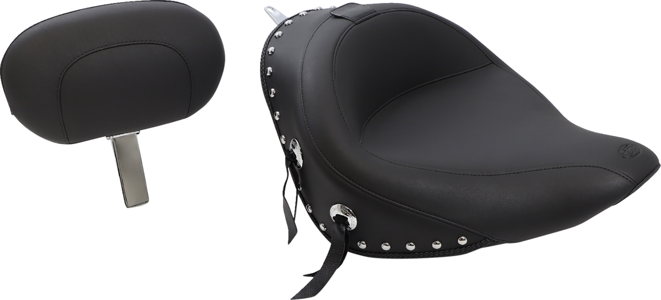 MUSTANG Wide Solo Seat – With Backrest – Black – Studded w/ Concho – Softail ’06-’17