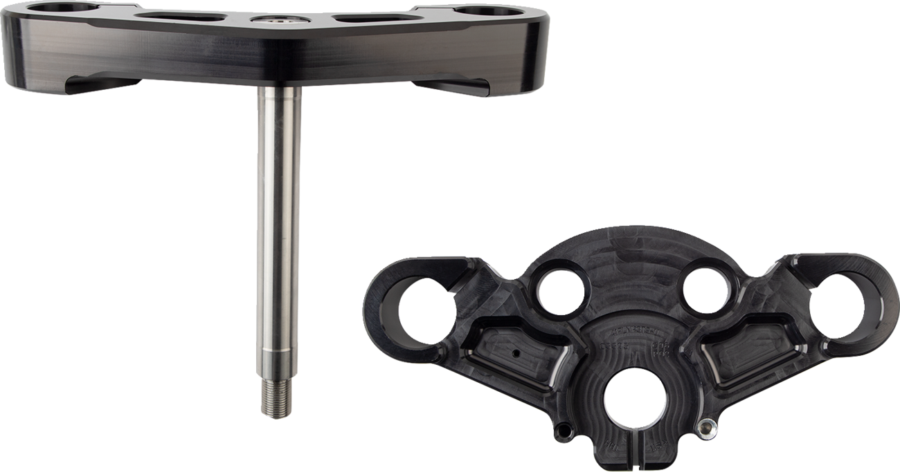 - Track style is designed with the stock rake and does not accept stock fairings or fork covers, and offers stronger clamping and significant weight reduction for improved front end performance