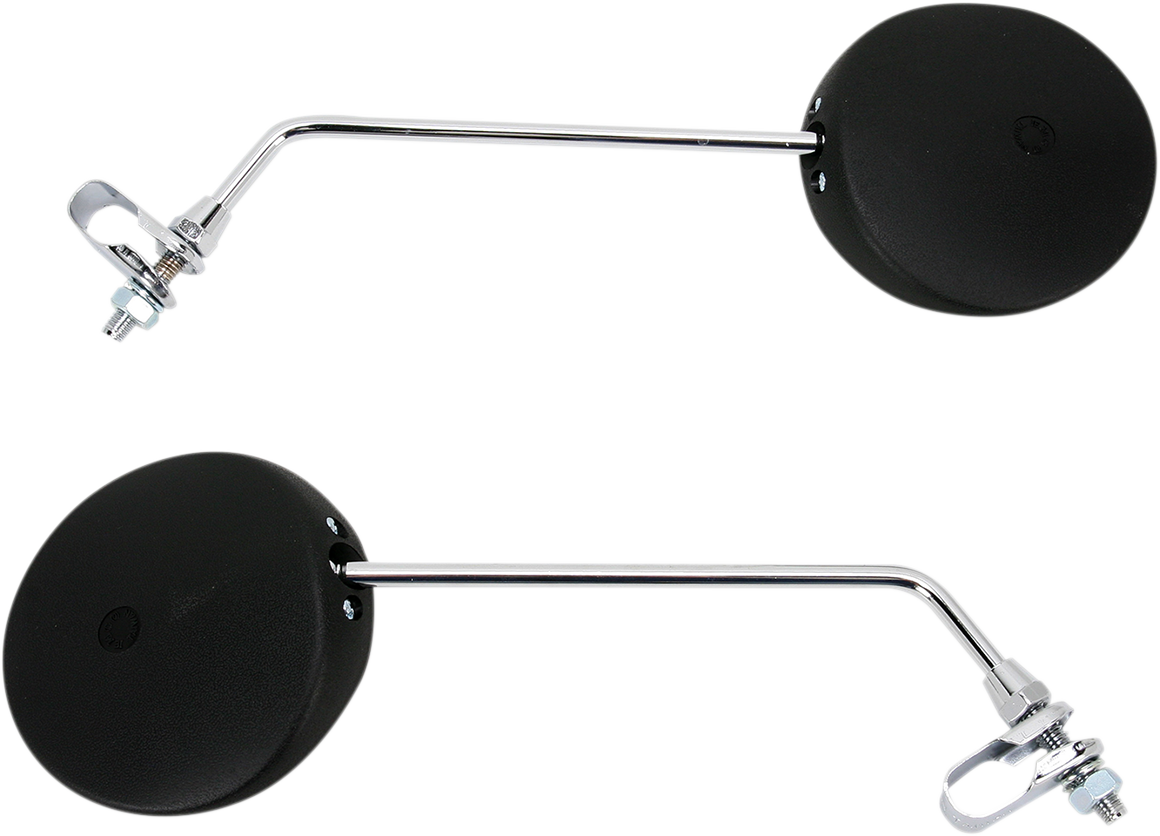 Mirrors – Side View – Round – 9″ Stem – Black Head/Chrome Stem/Tinted Glass – Pair – Universal
