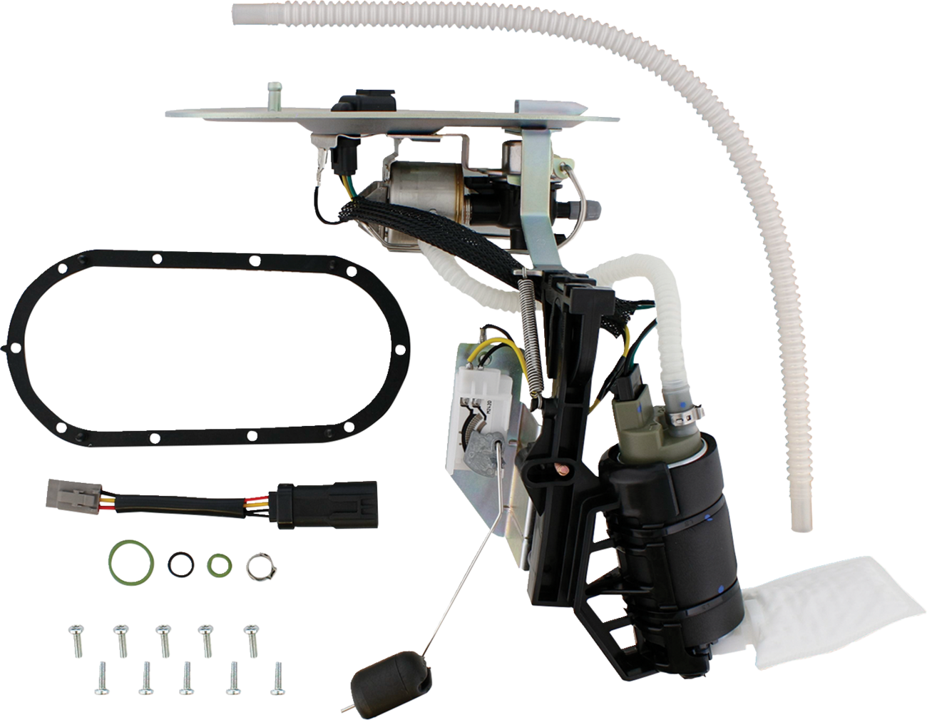 - Includes sending unit, regulator, fuel filter, O-ring kit to reseal dry break connector, replacement fuel line from quick connector to the module, tank gasket, hardware (including seals) and locking ring when applicable