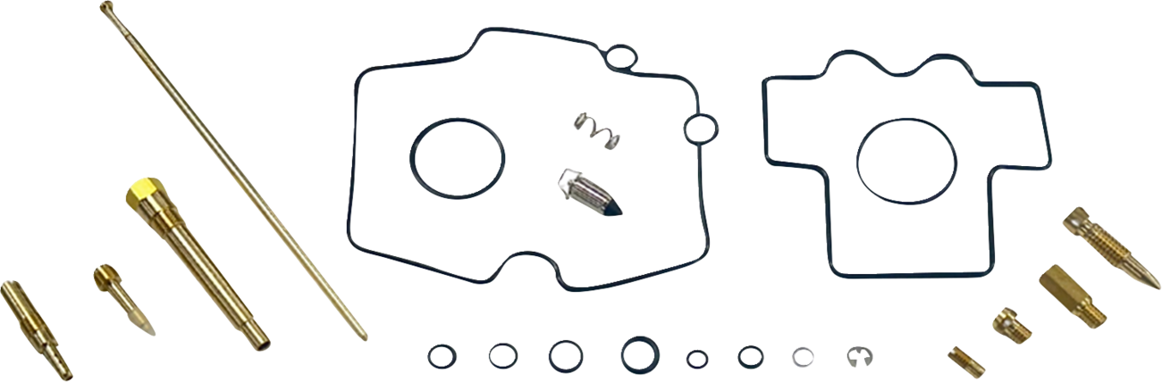 - Kit includes main jet, pilot jet, jet needle, float valves, float chamber gasket and O-rings