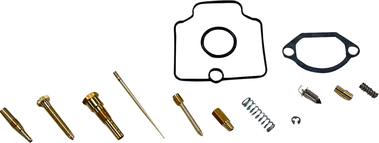 - Kit includes main jet, pilot jet, jet needle, float valves, float chamber gasket and O-rings