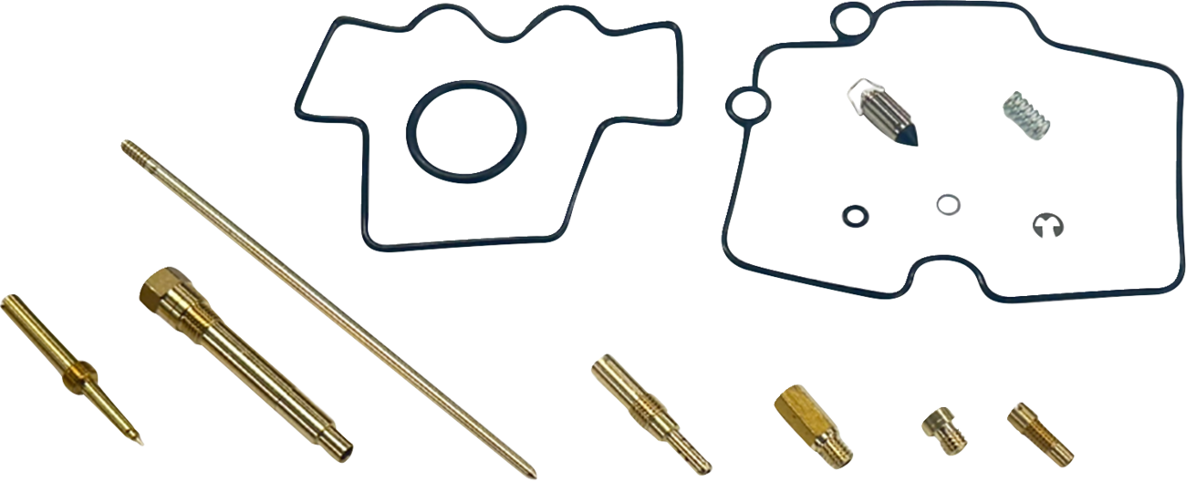 - Kit includes main jet, pilot jet, jet needle, float valves, float chamber gasket and O-rings