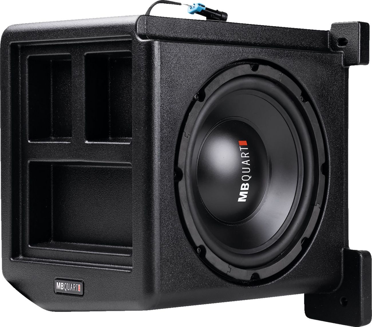 - Dual voice coil 10″ subwoofer in a high impact HDPE composite enclosure fits under the front passenger seat