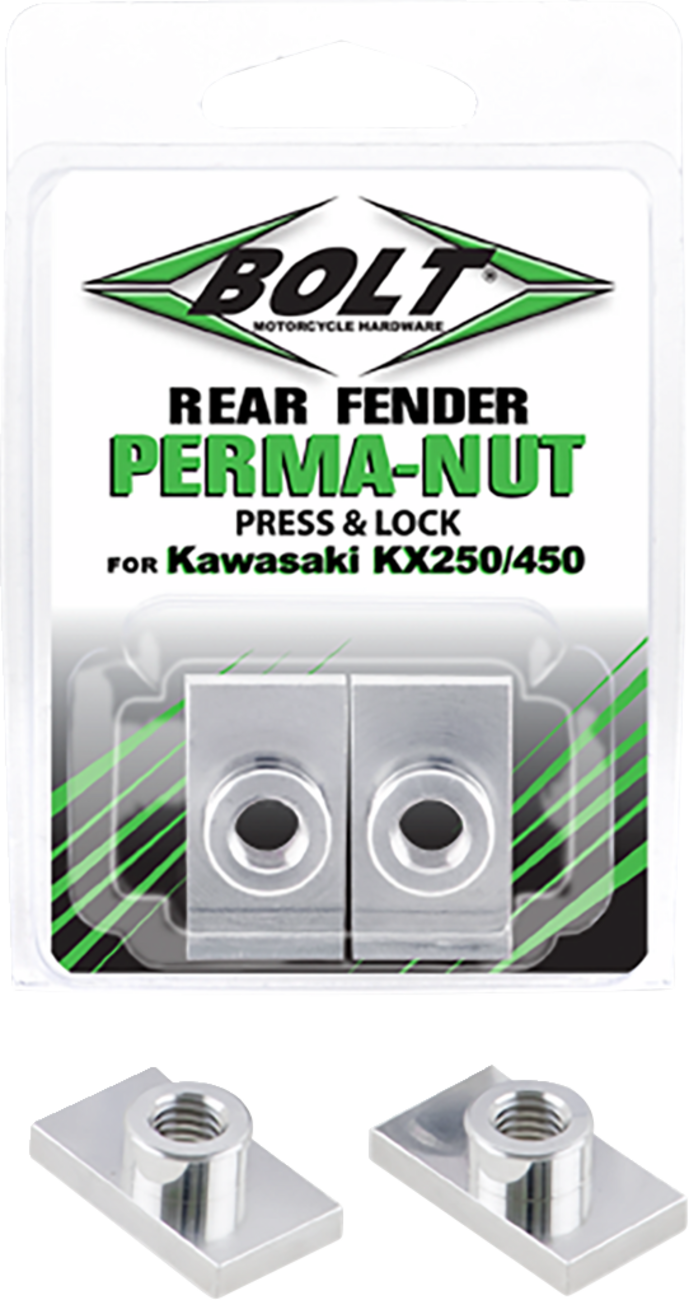 - Rear fender “Perma-Nuts” replace OEM rear fender t-nuts number 92210-1635 on ’19-current KX450 and ’21-current KX250 models
