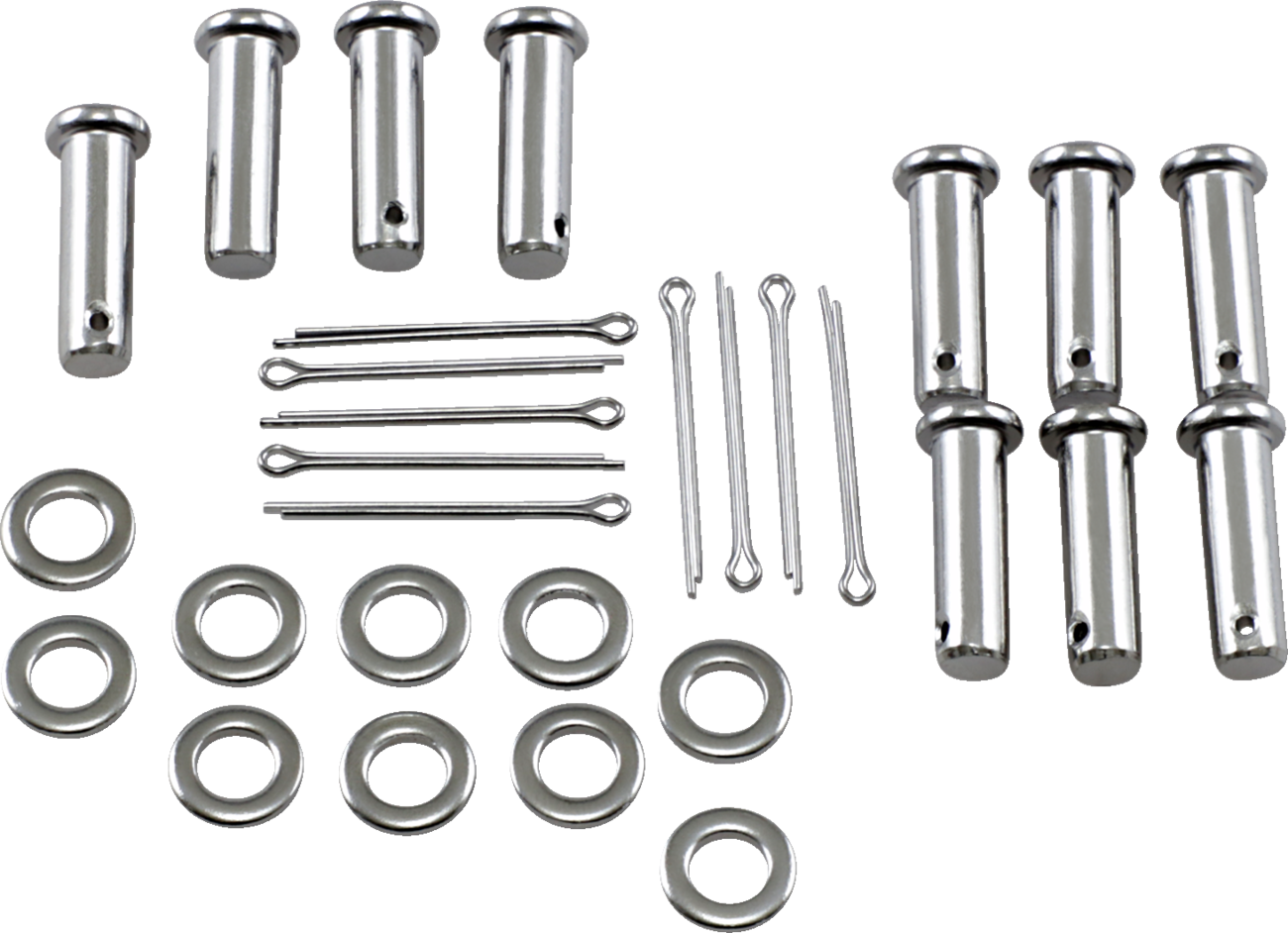 - Kit contains chrome clevis pin, chrome washer and chrome cotter pin