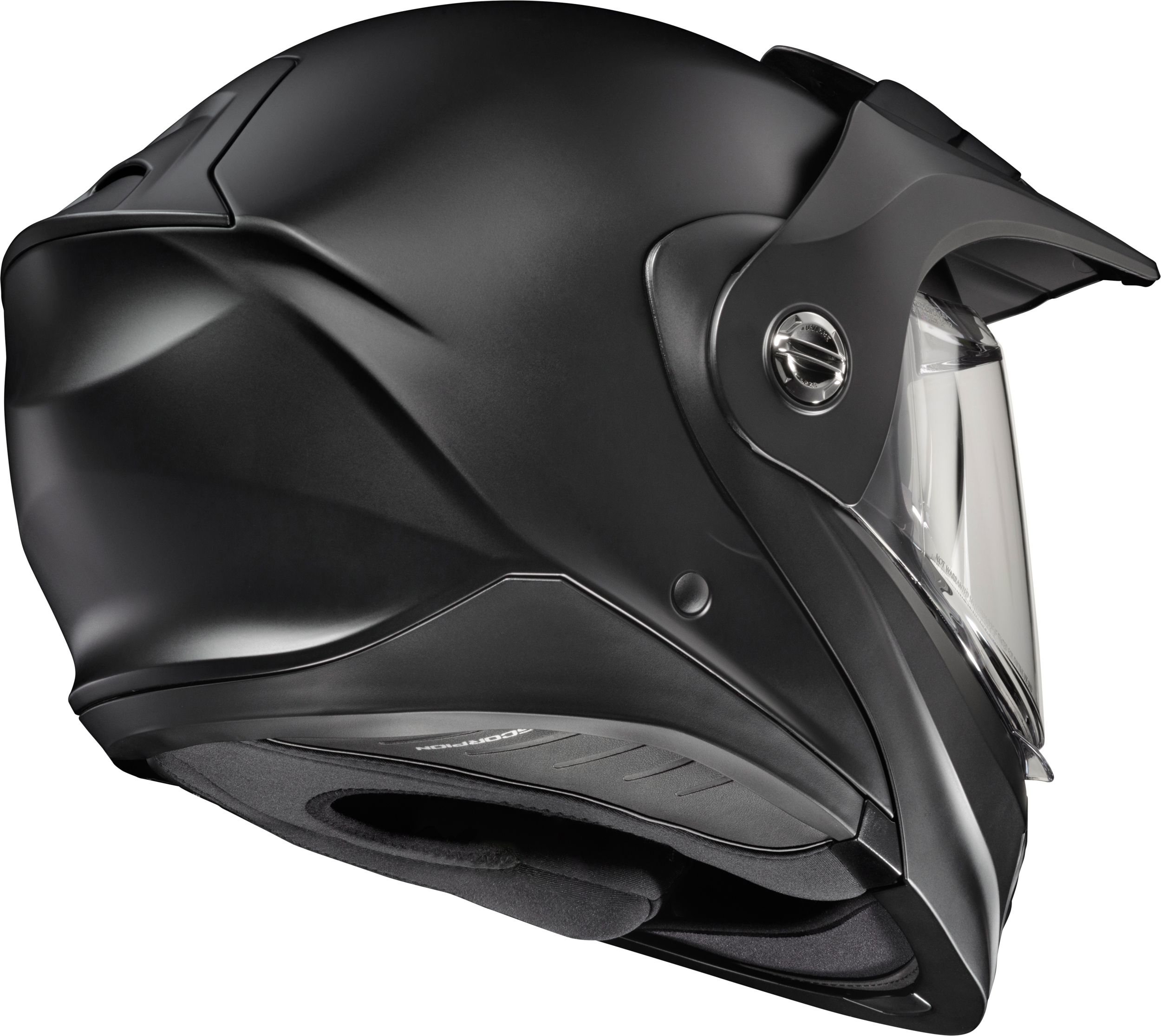The EXO-AT960 Modular Helmet has evolved from one of the most popular Adventure Motorcycle helmets on the market; the EXO-AT950. Maintaining its high value (in addition to U.S. DOT Certification), ScorpionEXO has now added the latest ECE 22.06 Safety Rating, which requires a wider range of testing than the previous 22.05 certification. The EXO-AT960 can be used as a full face ADV helmet with external peak visor attached, or the peak visor can be removed for a more aerodynamic touring helmet. The oversized eye port is extremely wide for greater peripheral vision and downward visibility, and the modular chin bar can be conveniently flipped up. The internal drop down Speedview® sun-visor allows you to adjust to changing lighting conditions throughout the day. Additionally, the no-fog Everclear® face shield can be removed and you can use the EXO- AT960 with goggles for off-road use. Three shell sizes made of Advanced LG® Polycarbonate and dual density EPS, result in a helmet that is light weight, strong, and protective. And for those who need to stay connected, the EXO-AT960 was specifically designed to integrate with the new EXO-COM® BlueTooth® Communicator Kit while the large speaker pockets also make it compatible with many other com systems in the market.