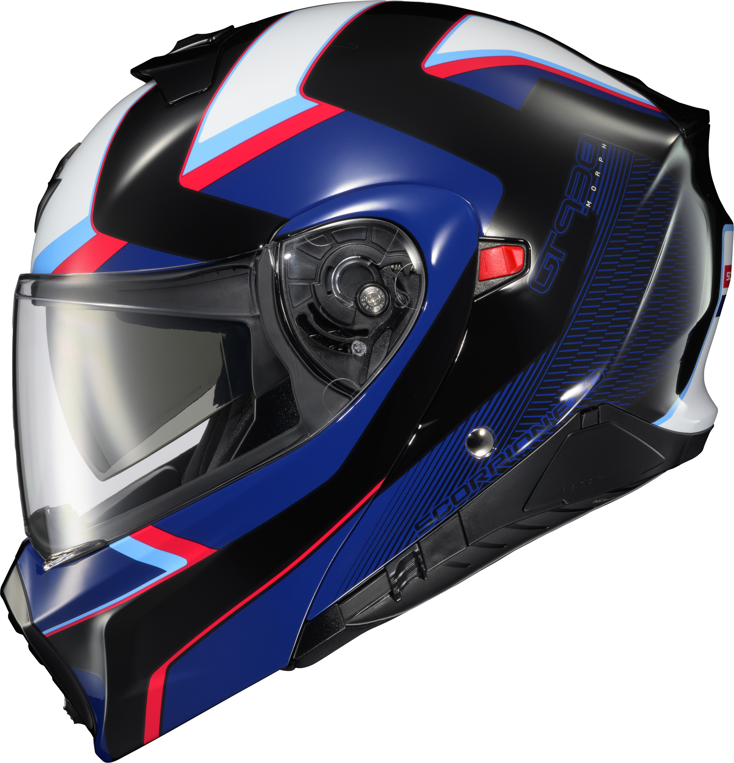 Once again ScorpionEXO® redefines value and versatility with the EXO-GT930 Transformer helmet, by taking the traditional modular to the next level and offering you what no one else does. In seconds, and without tools, you can convert your full-face helmet to an open-face to meet changes in riding conditions, or your personal preference. Whether you choose to ride in full-face or open-face mode, both configurations also benefit from an integrated SpeedView® drop-down sun visor, which can be easily accessed by gloved hands. A detachable peak visor is also included for use in open-face mode, giving you an added layer of protection from the suns harmful rays, making it a true open-face helmet. Ventilation in full-face mode is provided by adjustable mouth and top intake vents and integrated rear exhaust vents that align perfectly with internal channels, keeping you cool when temperatures rise, and warm when temperatures drop. The dual homologated (DOT & ECE P/J) Advanced Polycarbonate shell and Multi-Density EPS provide the energy displacement and protection you need. And for those who need to stay connected, the EXO-GT930 was specifically designed to integrate with the new EXO-COM® BlueTooth® Communicator Kit while the large speaker pockets also make it compatible with many other com systems in the market. The EXO-GT930 gives you the freedom to Transform your riding experience.