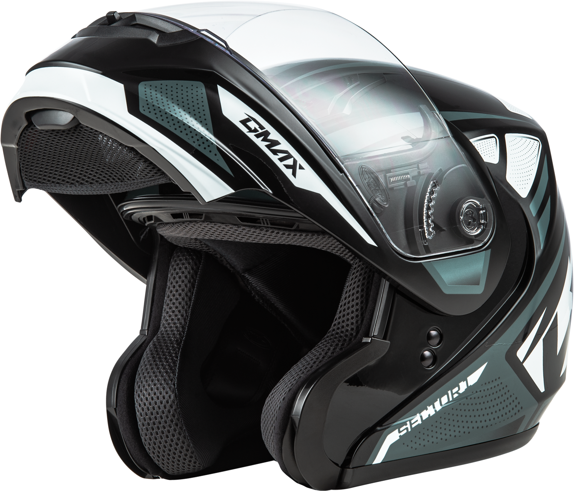 - GMAX® D.E.V.S (dual exhaust venting system) top and rear vents reduce temperature by allowing hot air to escape from the top of the helmet