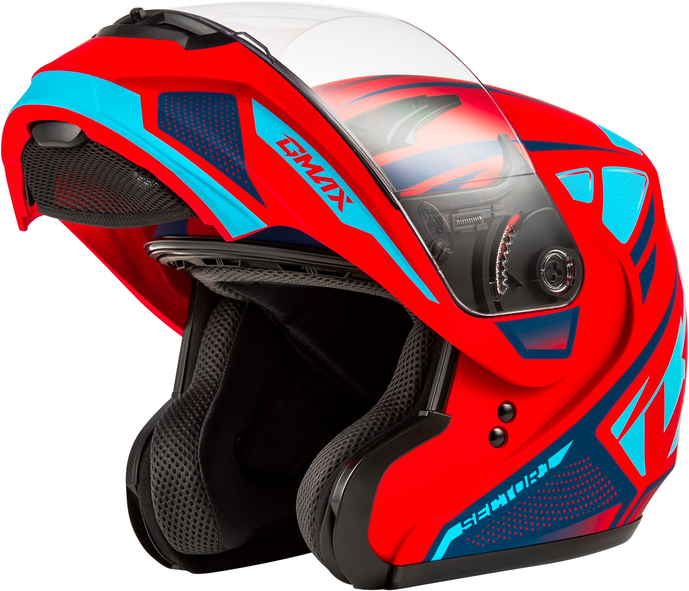 • GMAX® D.E.V.S (dual exhaust venting system) top and rear vents reduce temperature by allowing hot air to escape from the top of the helmet