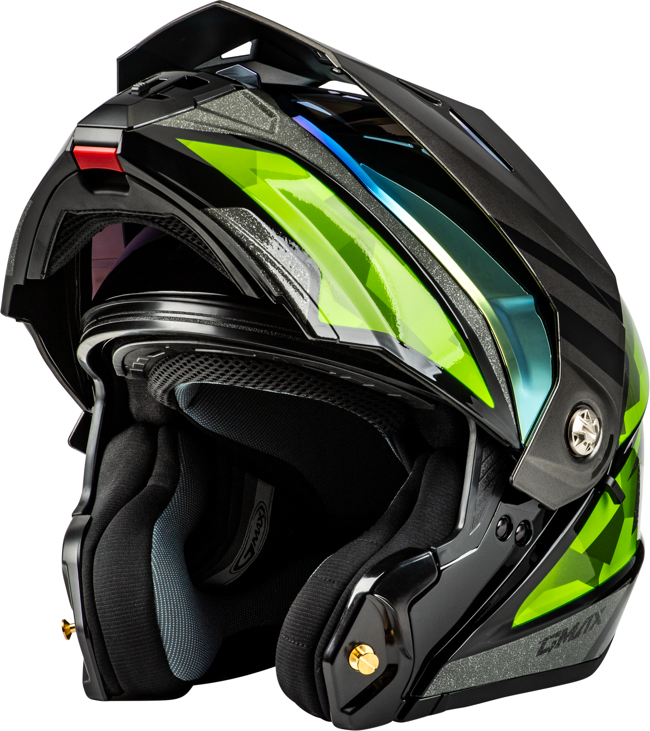 DOT Certified Comfortable premium interior Front, top, and rear ventilation Quick release buckle for gloved hands Removable peak visor Speaker pockets / Coms-ready Drop-down inner shield (colors available) Available single pane, dual pane, and electric shields (colors available)