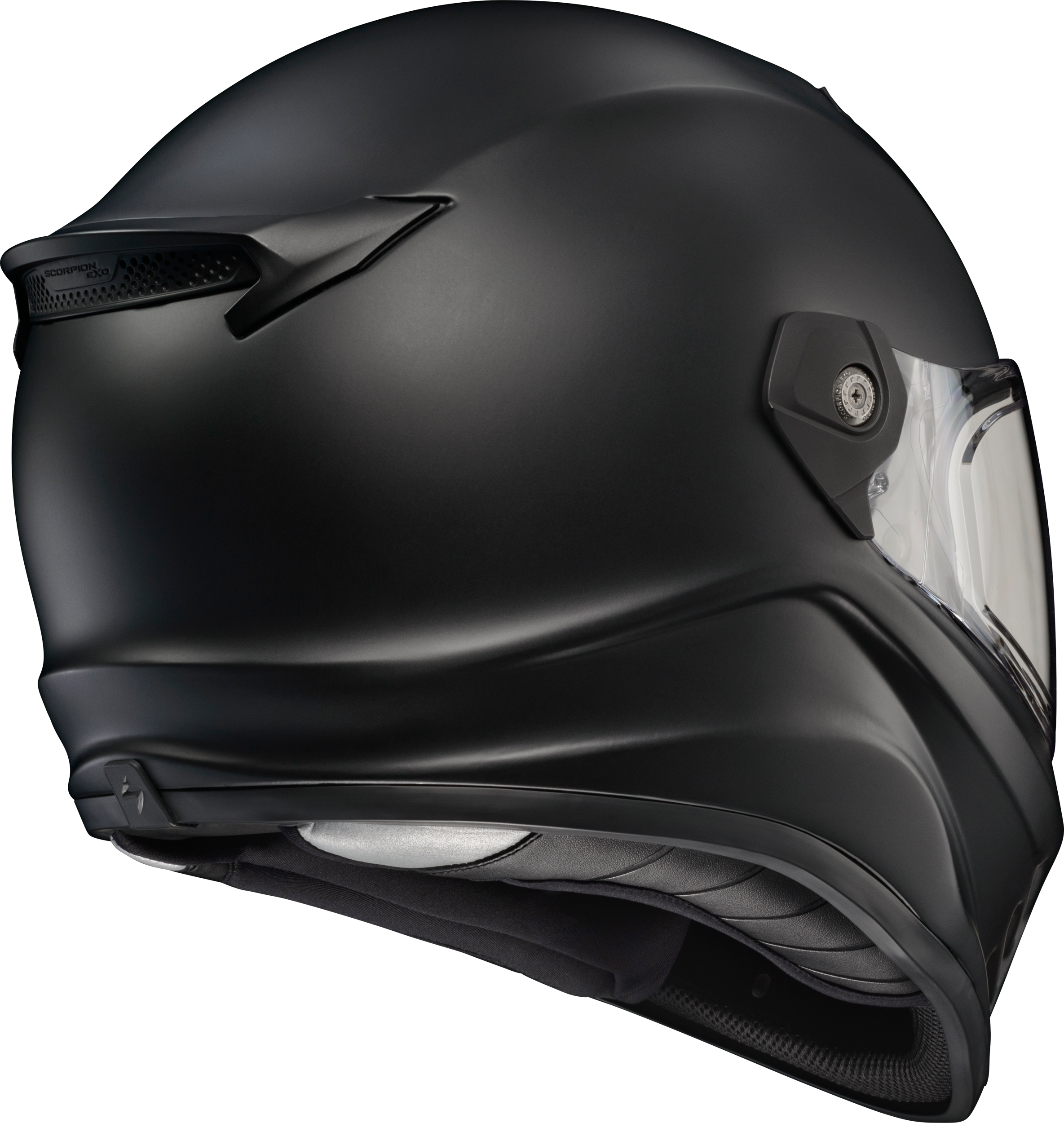 - Scorpion EXO’s face shield ratchet system pulls the shield securely against the eye port, ensuring a proper seal