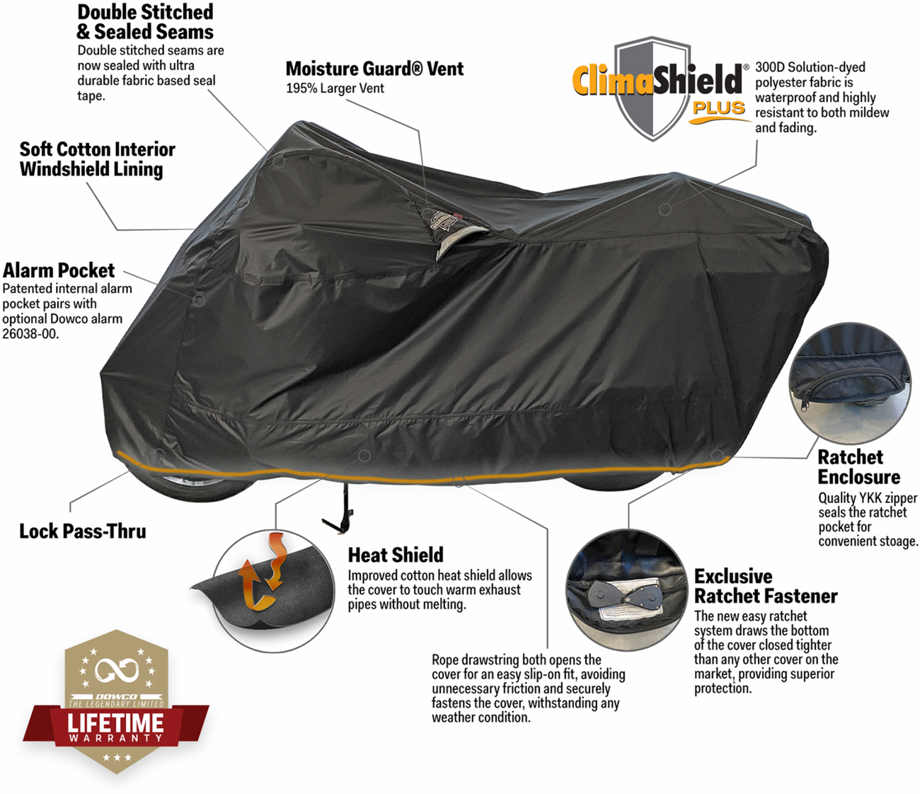 Looking for dependable parts? The DOWCO COVER WEATHERALL PLUS RATCHET MD is ready to ship from Knobtown Cycle.