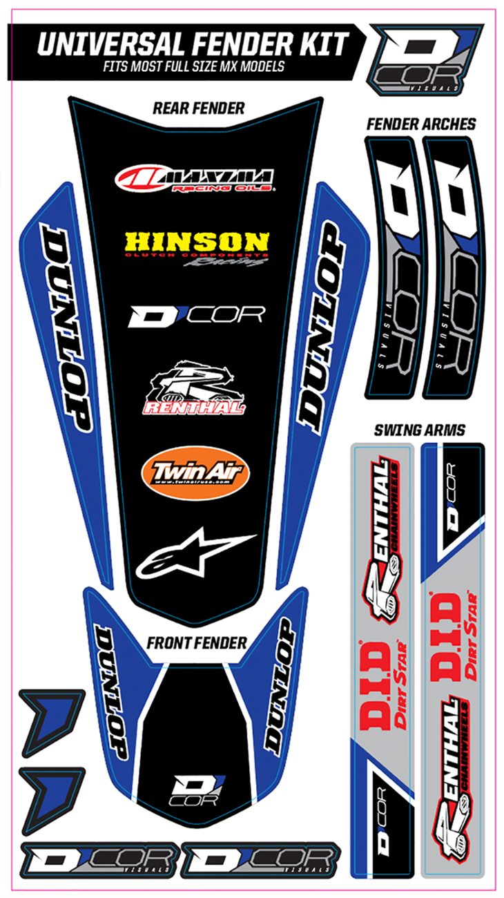 - Includes graphics for front fender, rear fender, fender arches and swingarm