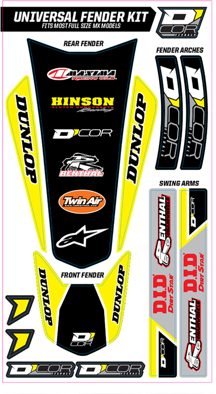 - Includes graphics for front fender, rear fender, fender arches and swingarm