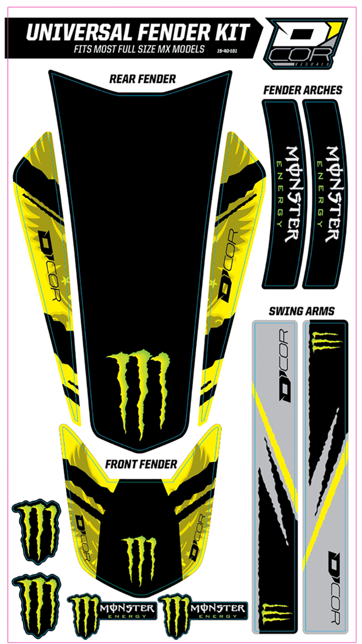 - Includes graphics for front fender, rear fender, fender arches and swingarm