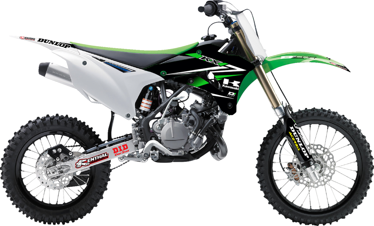 - Includes graphics kit for radiator shroud, lower forks, swingarm, front and rear fender