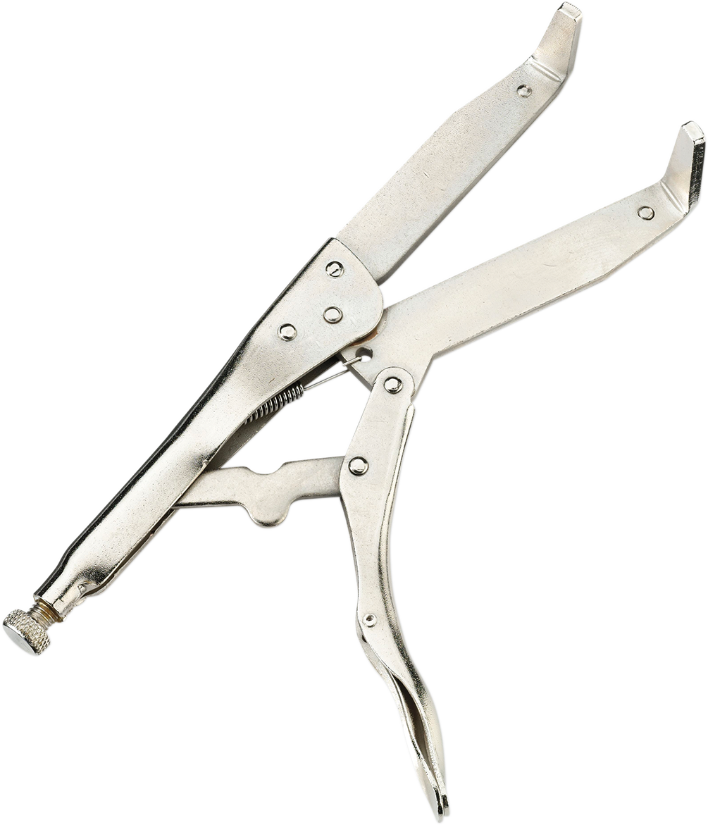 - One side has angled jaws, the other has two round 8 mm spanner pins