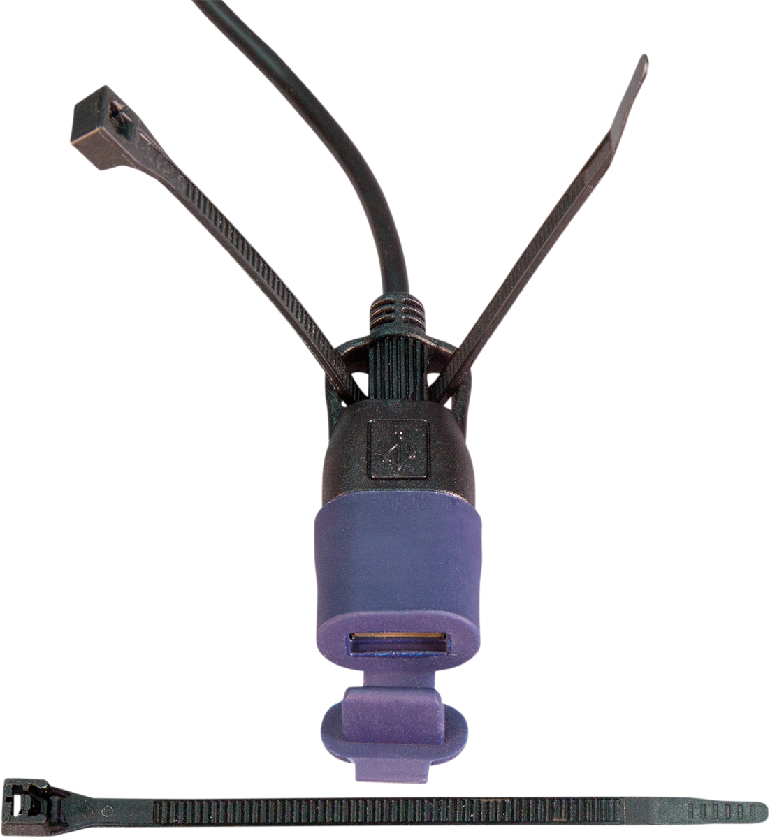 - Weatherproof USB charge port easily zip-tie to handlebar, strut or even brake/clutch cable – seals against inserted USB cable for charging in any weather