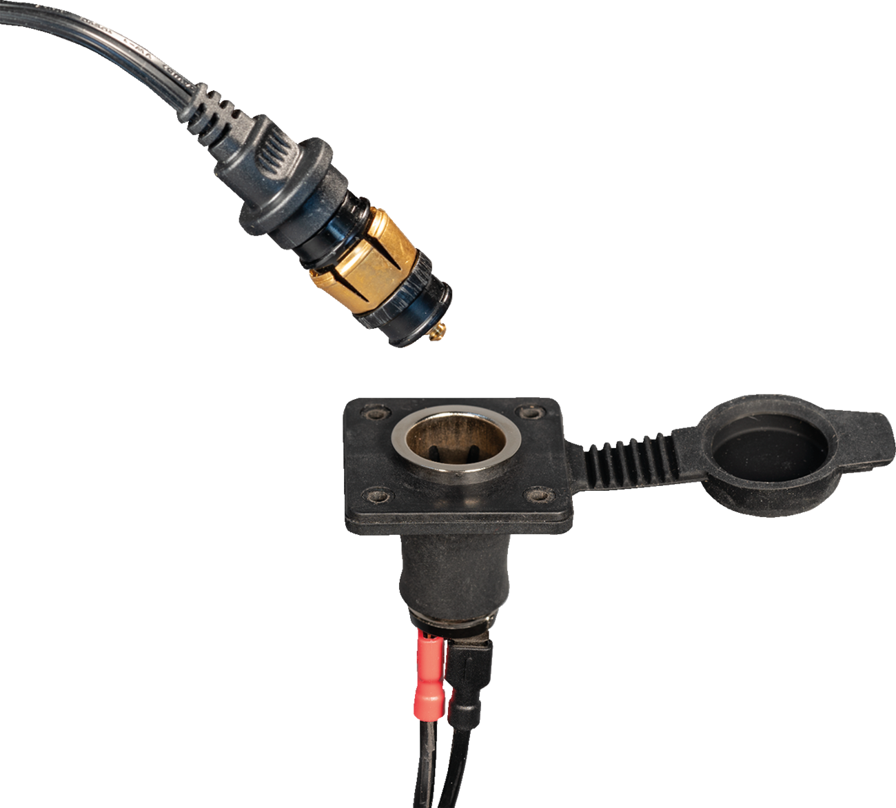 - Creates an external charging and power connection point on a motorcycle, UTV or ATV
