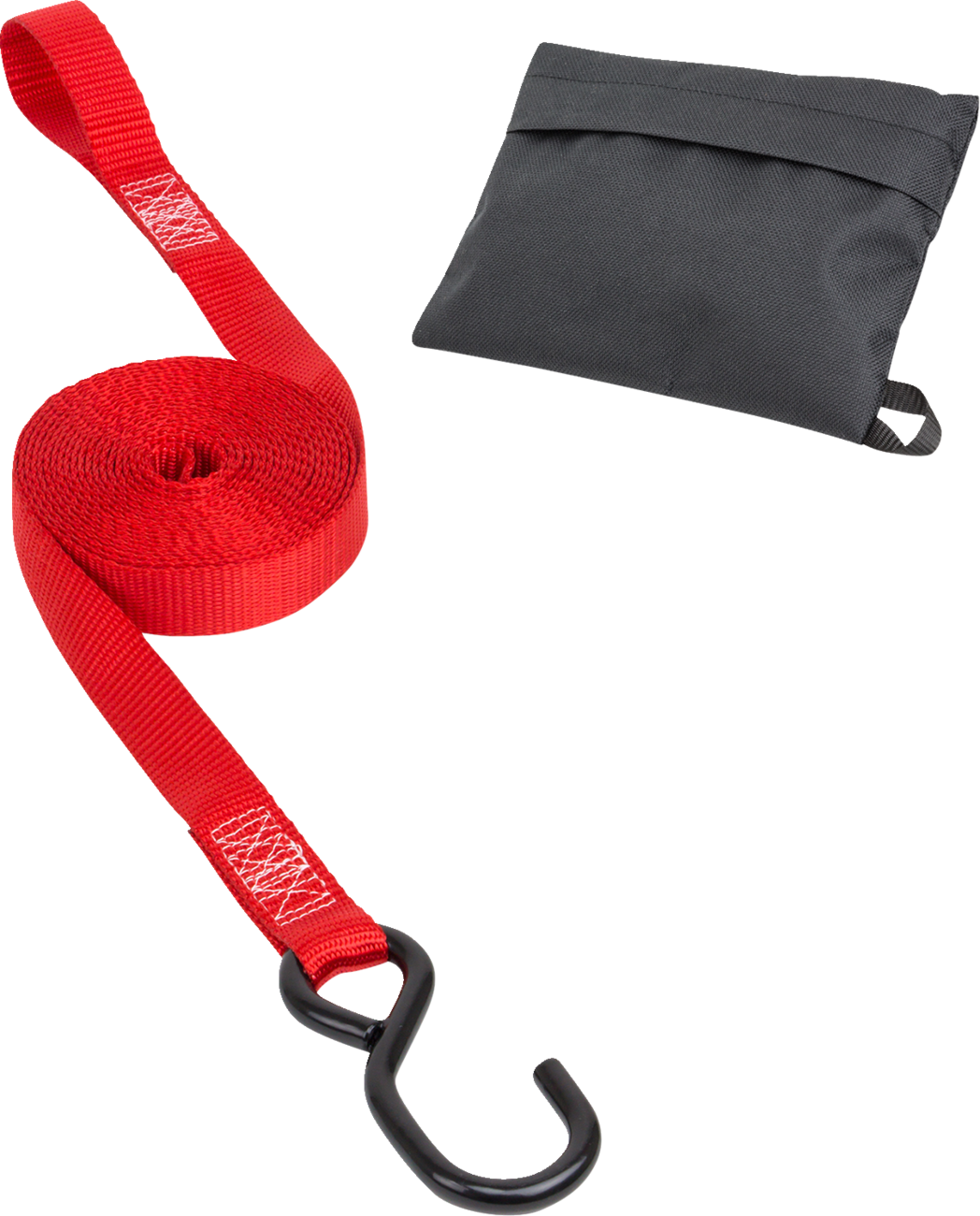 - 1″ x 15′ webbing with loops at each end to secure bike when towing