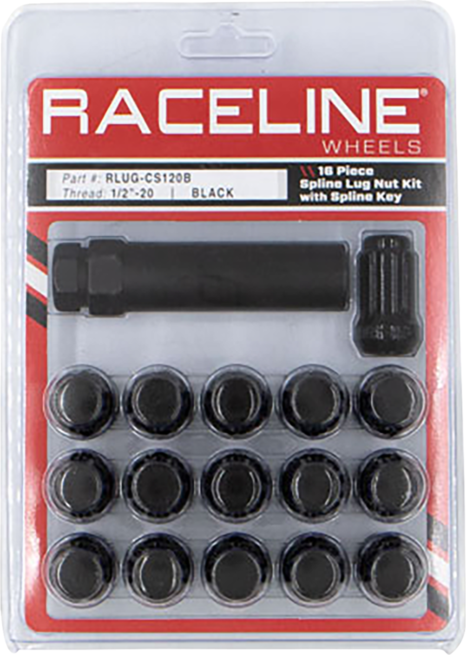 RACELINE WHEELS 16pk 1/2 X 20 SPLINE BLK CS PACK W/ KEY