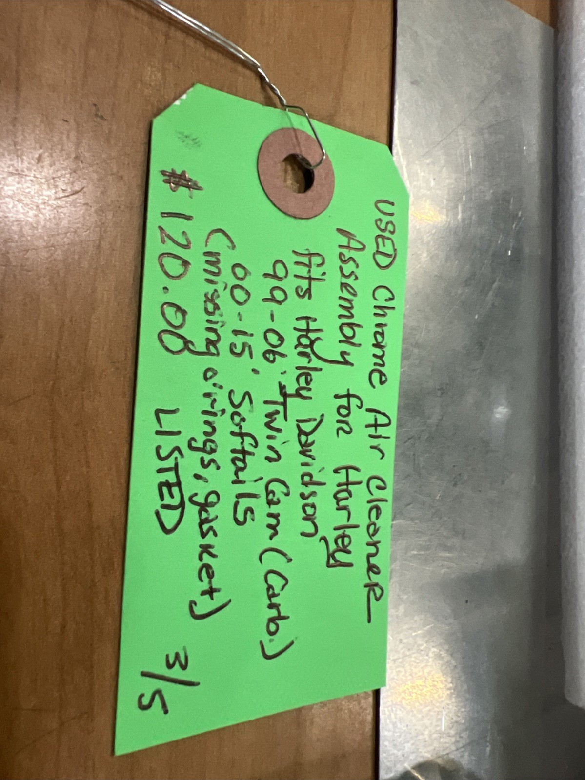 Chrome Air Cleaner Assembly For Harley. Condition is used. Missing o’rings and gasket. Fits Harley Davidson 99-06’ Twin Cam carb, 00-15’ Softails buyer is responsible for fitment and applications