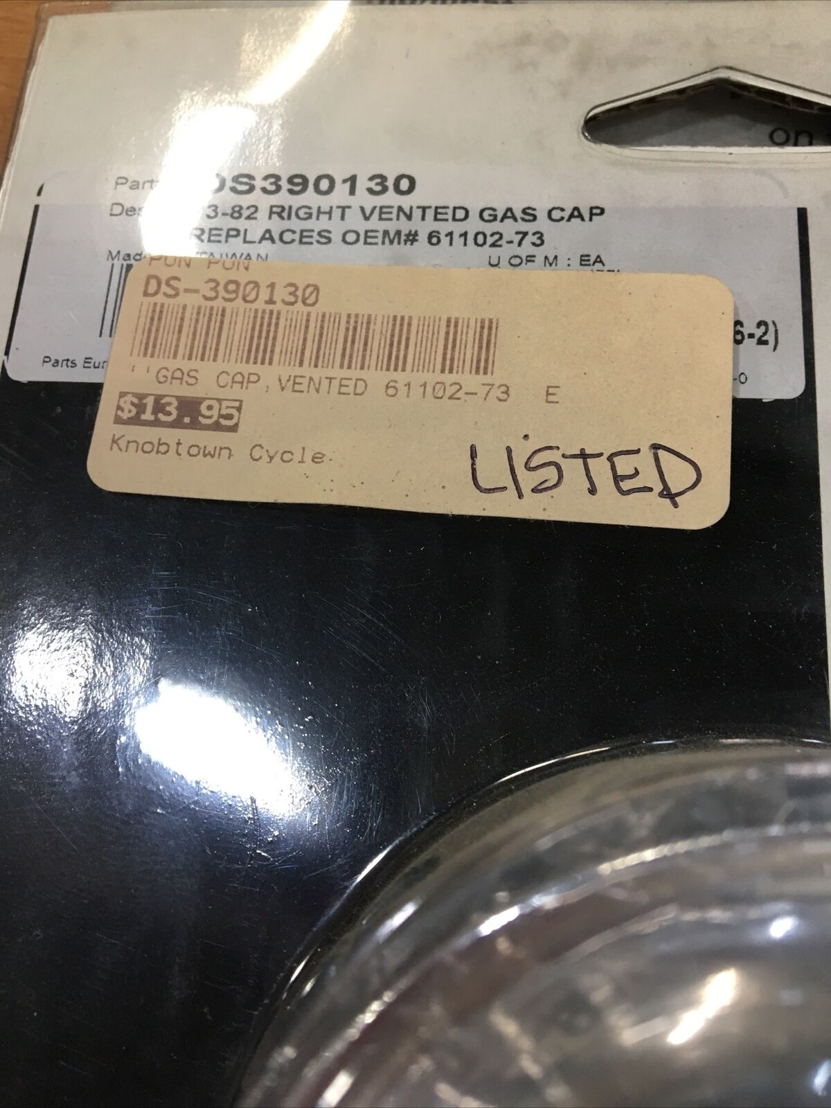 Chrome Vented Original Style Gas Cap #DS-390130. Condition is new. Fits Harley Davidson 73-82’ Big Twins replaces OEM #61102-73. Buyer is responsible for fitment and applications
